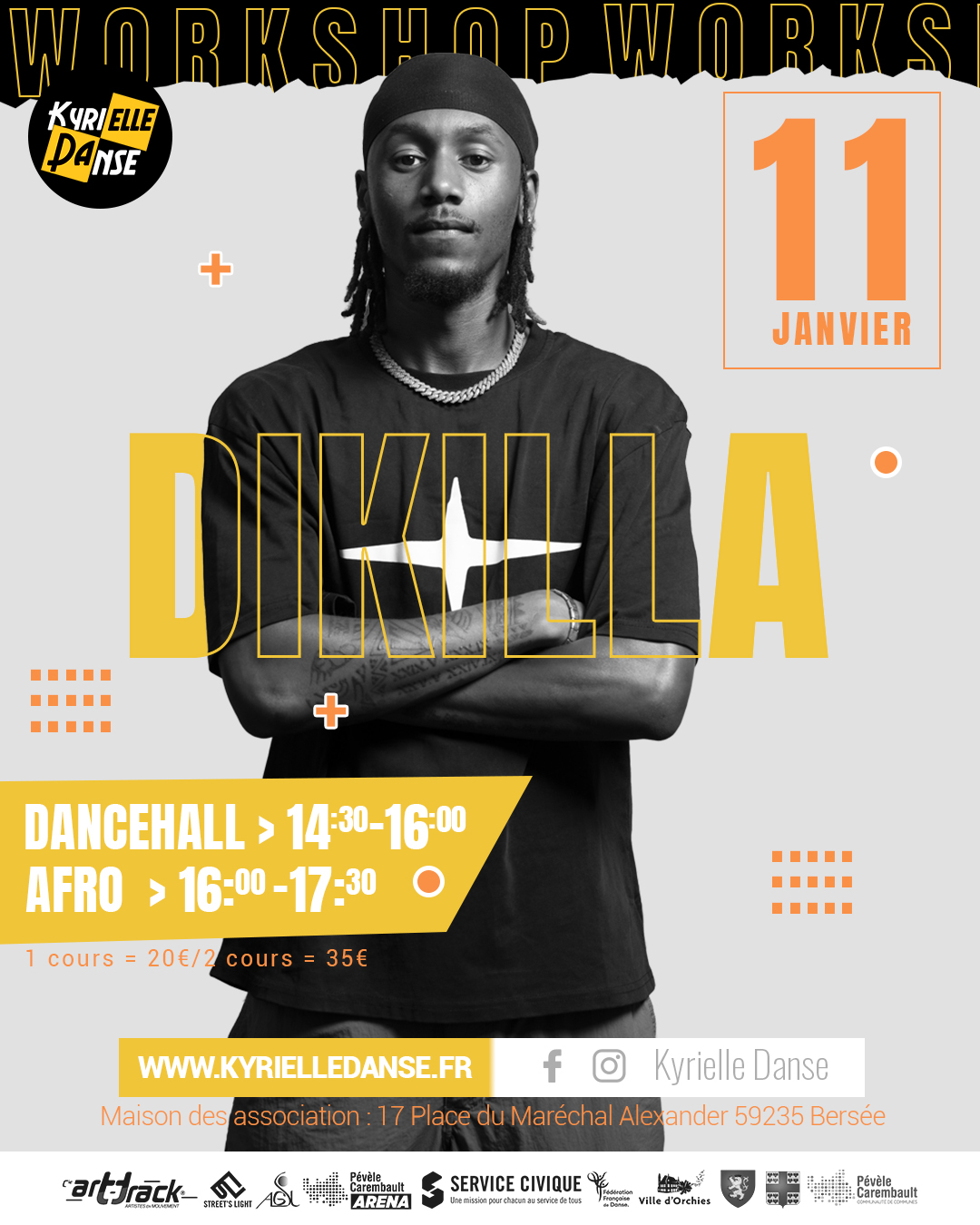 Kyrielle Danse vous donne rendez-vous le samedi 11 janvier pour un workshop unique animé par Dikilla, danseur et chorégraphe reconnu pour son style et son énergie.